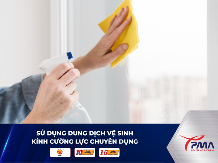 Các loại dung dịch vệ sinh kính cường lực chuyên dụng được sản xuất với công thức đặc biệt giúp loại bỏ bụi bẩn, vết ố mà không làm ảnh hưởng đến bề mặt kính. Bạn có thể tìm mua các sản phẩm này tại các cửa hàng đồ gia dụng hoặc siêu thị.