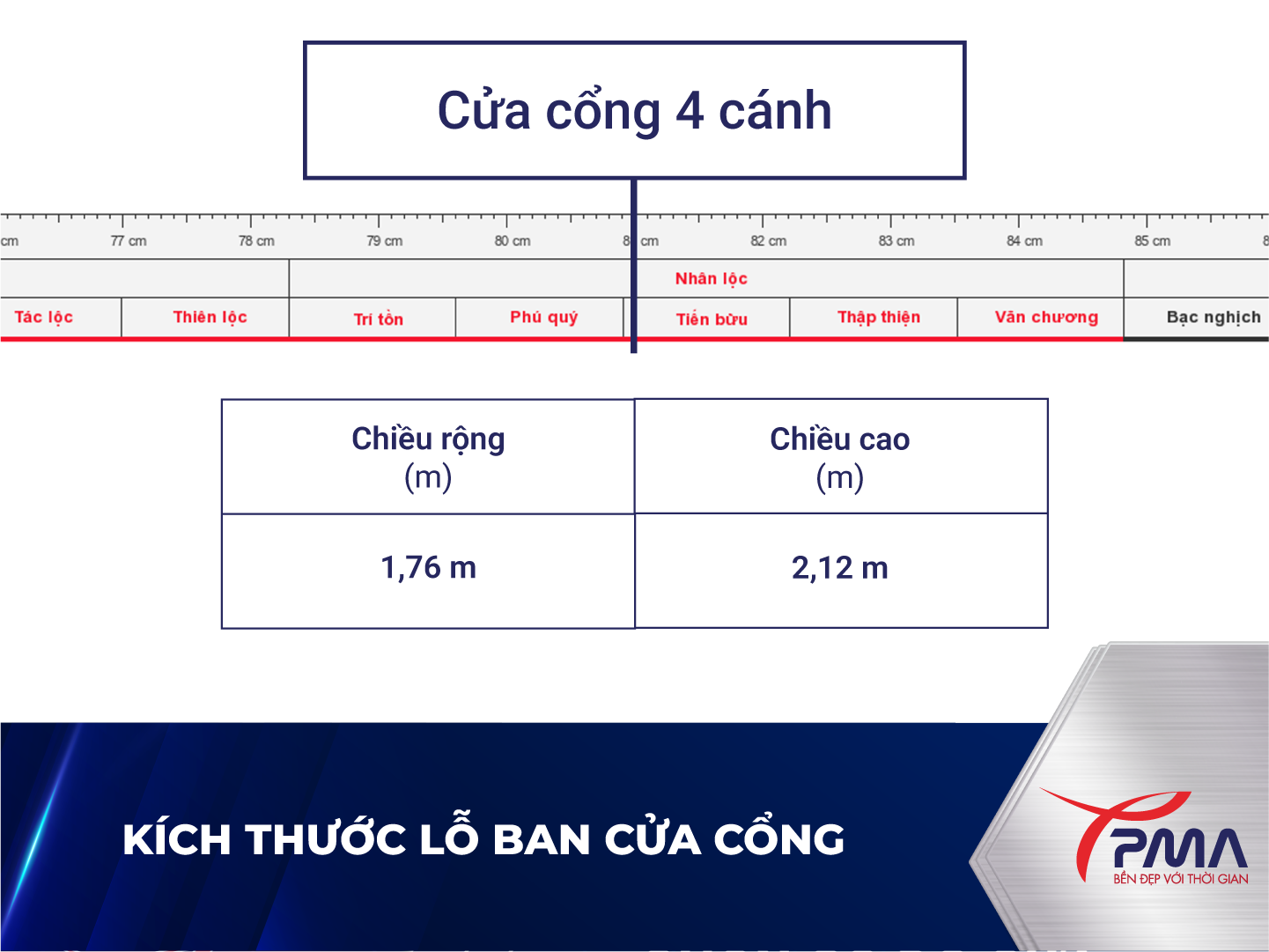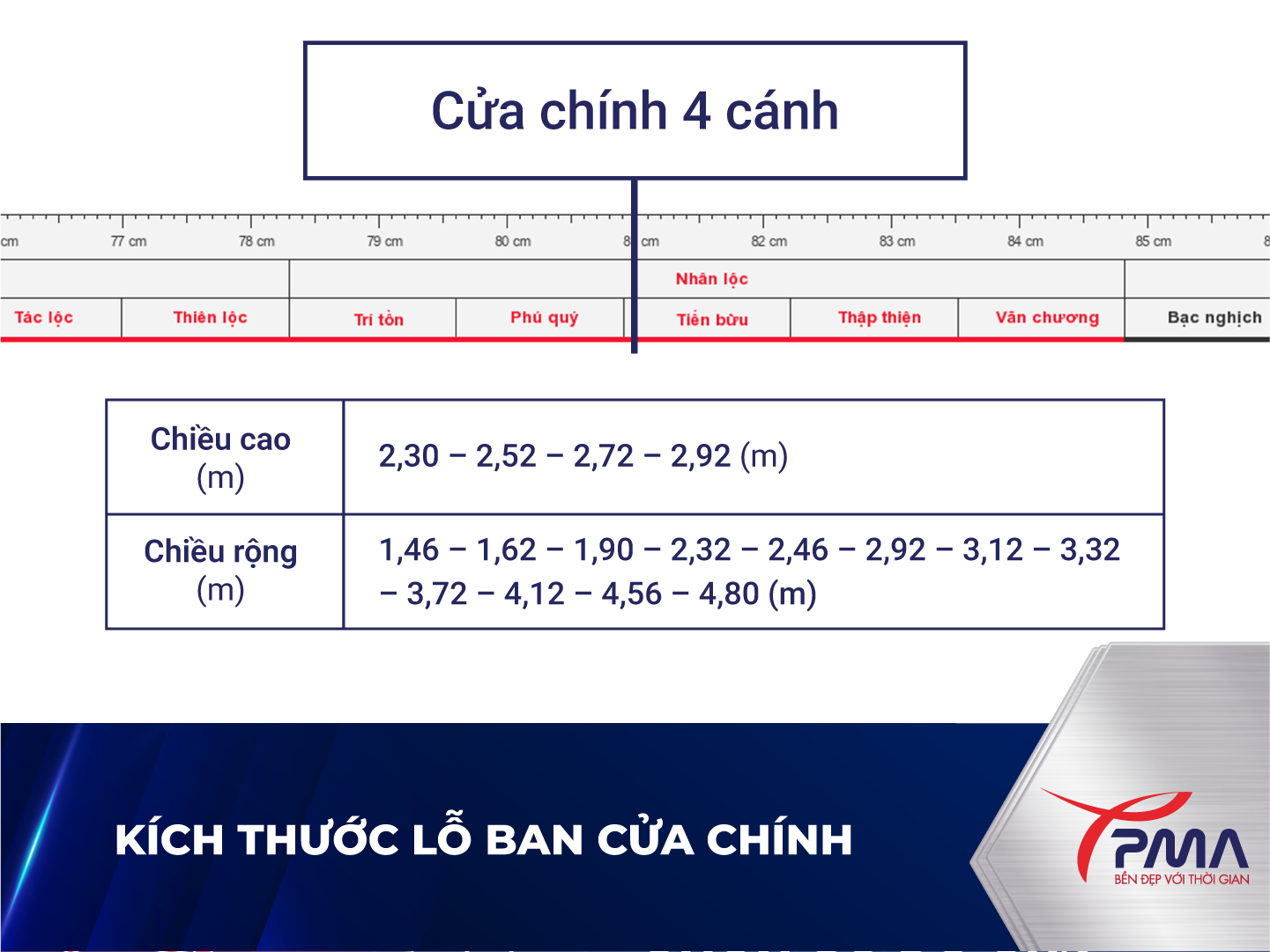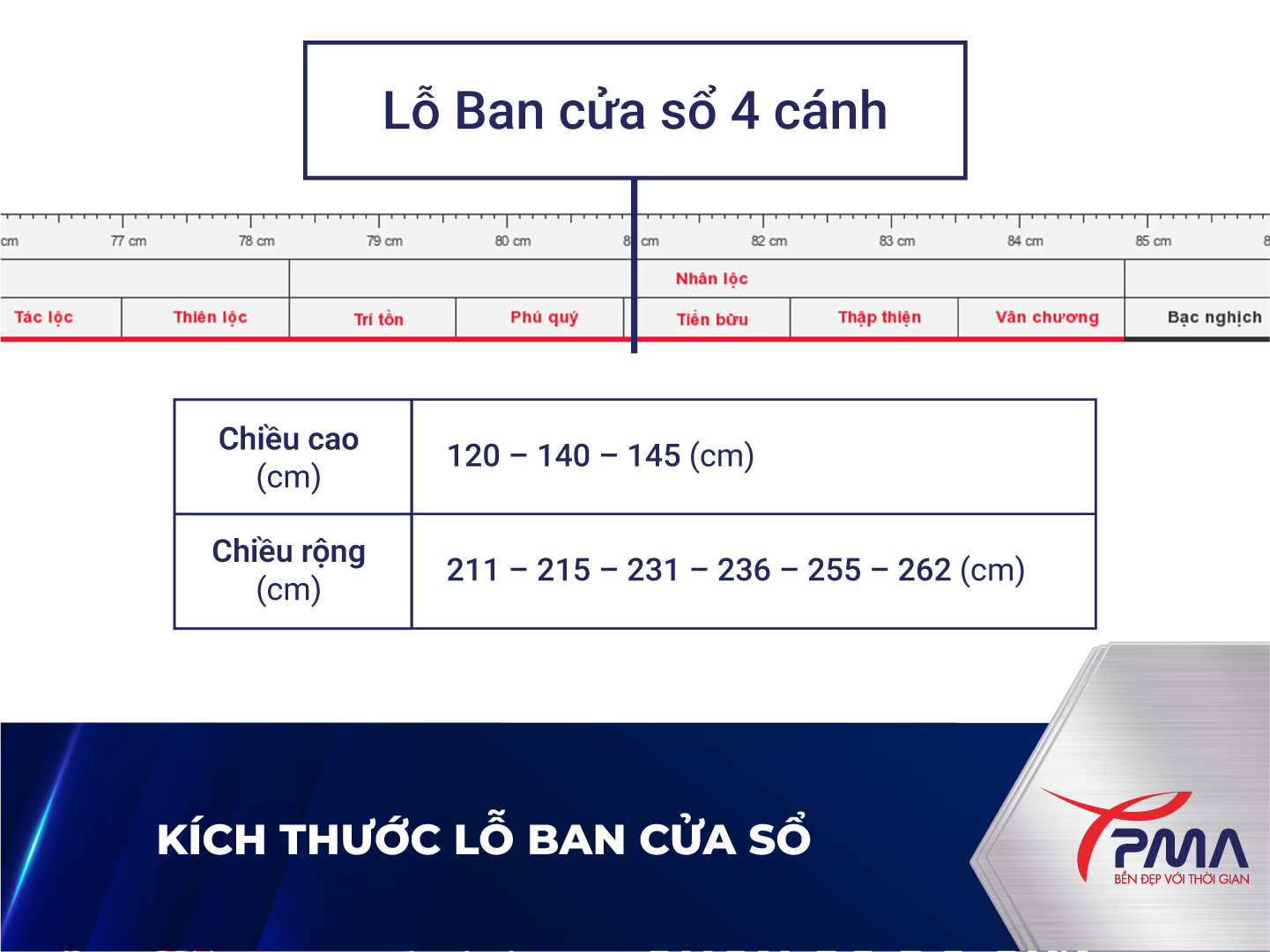 Kích thước Lỗ Ban cửa sổ 4 cánh