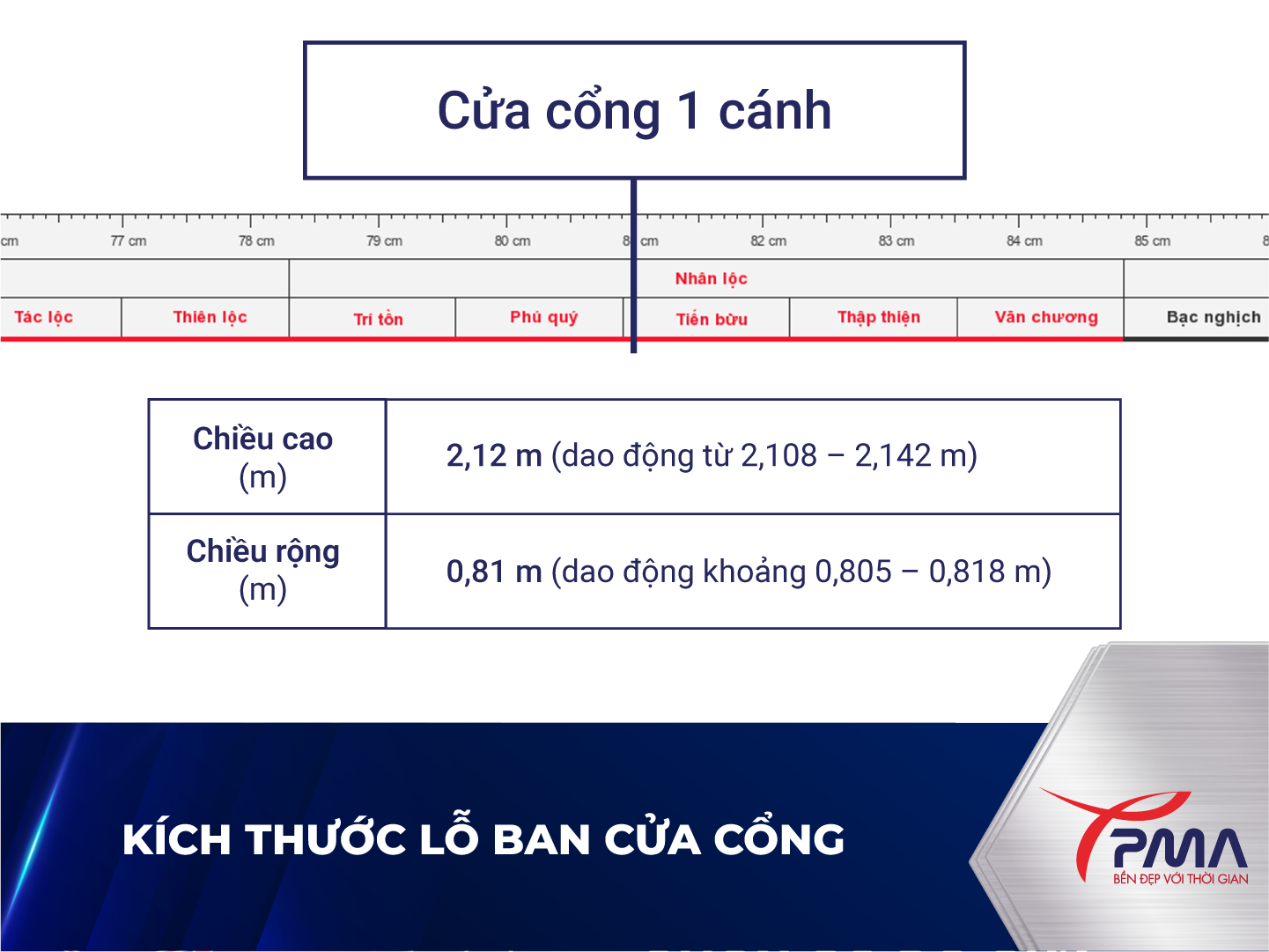 3. Bảng kích thước Lỗ Ban cửa chuẩn từng công trình
