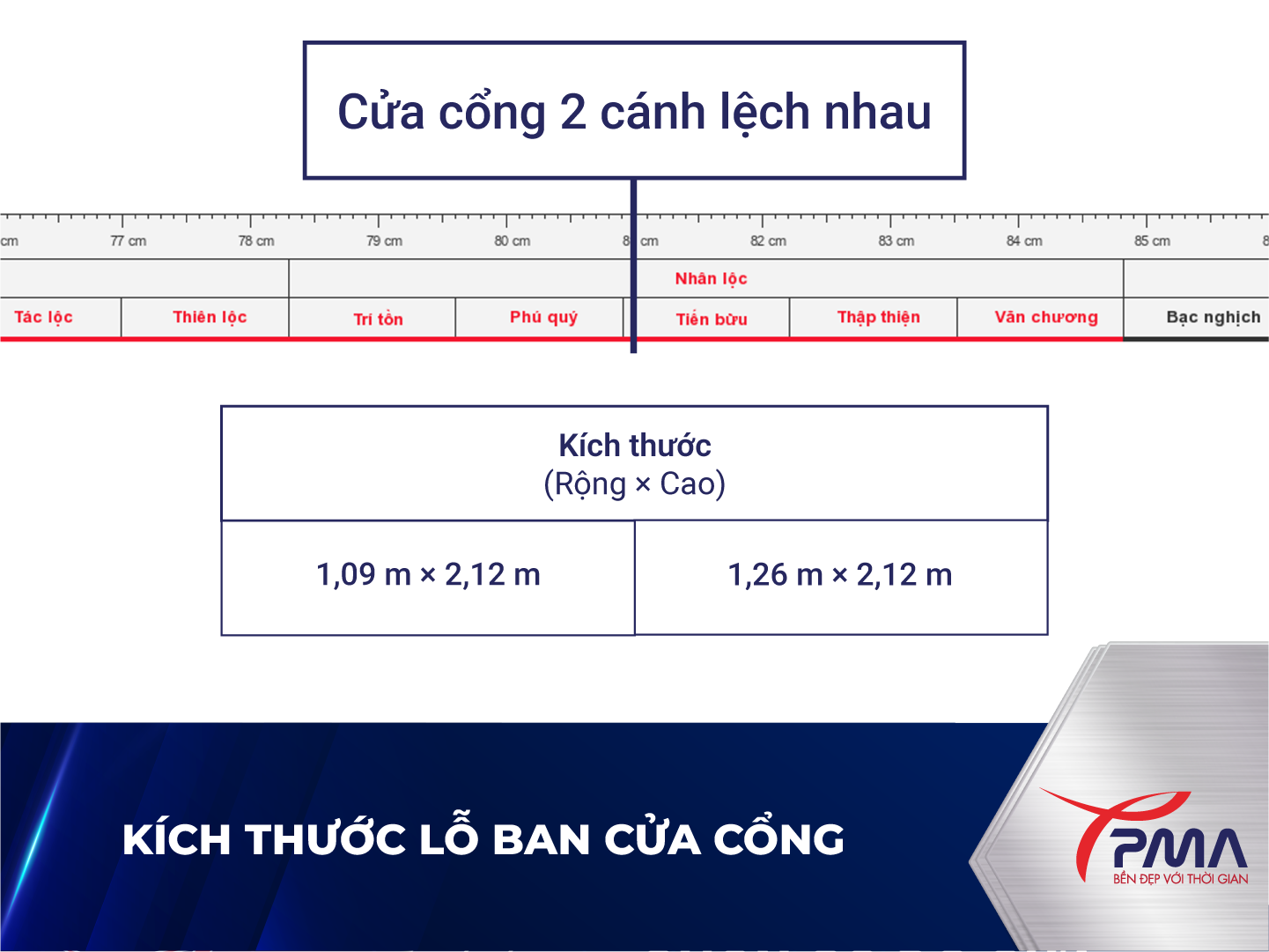Đối với những ngôi nhà có sân vườn, thường sẽ được thiết kế thêm một cửa cổng lớn bao quanh toàn bộ khuôn viên, vừa đảm bảo an ninh vừa tạo điểm nhấn cho không gian kiến trúc. Kích thước cửa cổng theo thước Lỗ Ban chuẩn được xác định dựa trên số lượng cánh cửa mà cổng sở hữu.
