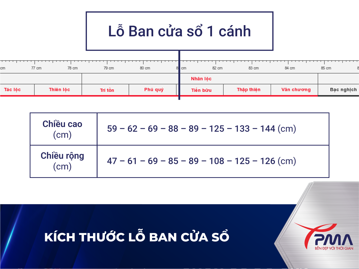 Kích thước Lỗ Ban cửa sổ 1 cánh