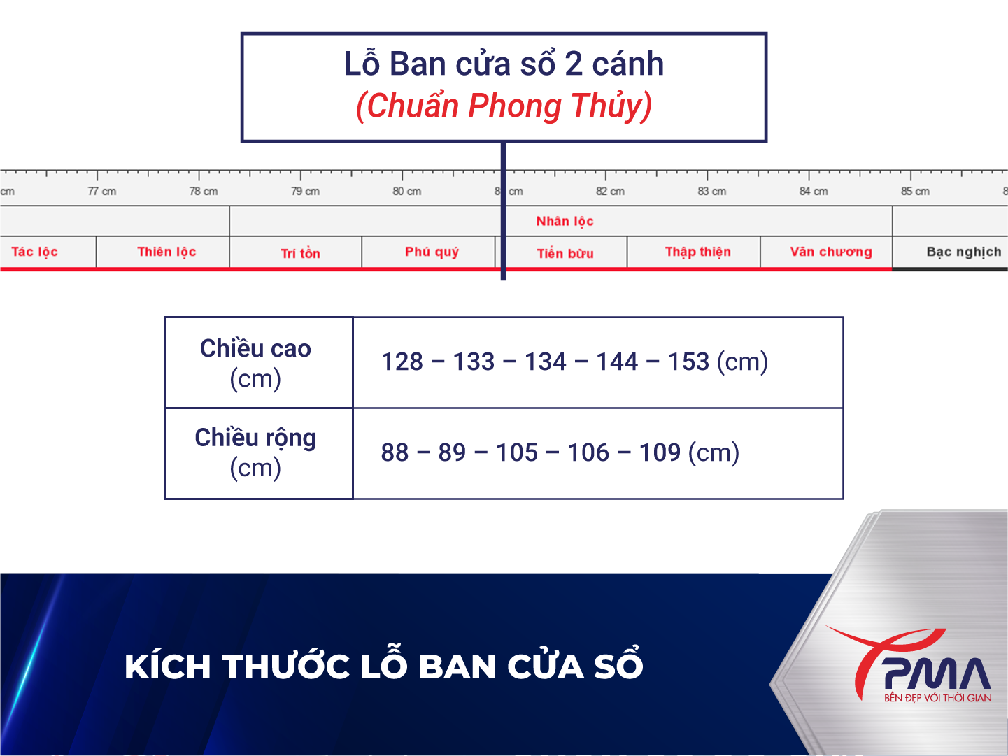 Kích thước Lỗ Ban cửa sổ 2 cánh (chuẩn phong thủy)