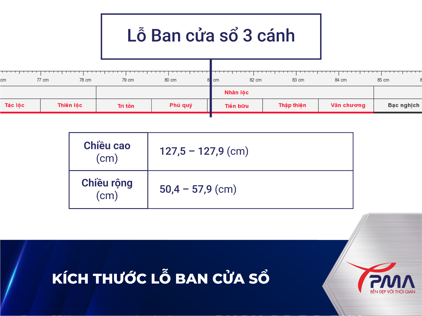 Kích thước Lỗ Ban cửa sổ 3 cánh