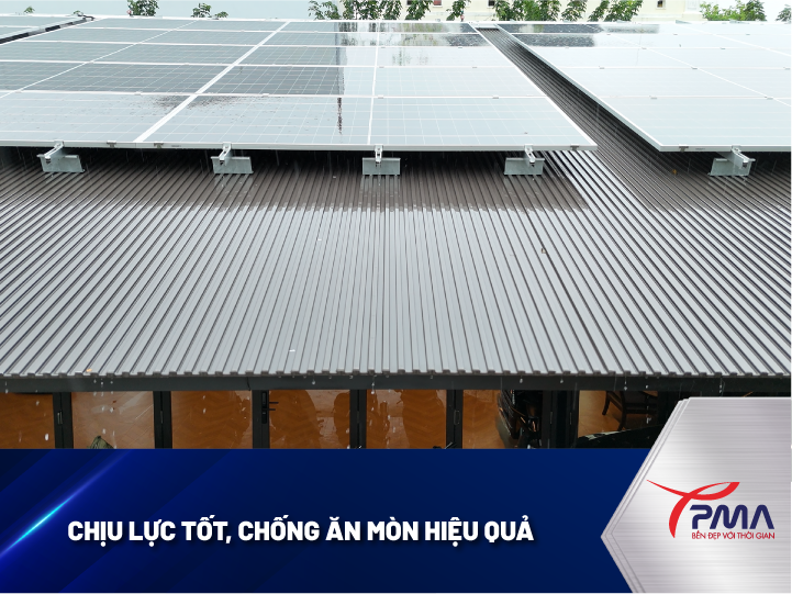 Tấm lợp nhôm PMA sở hữu khả năng chịu lực cao và chống ăn mòn vượt trội, đặc biệt phù hợp với môi trường ven biển. Sản phẩm bền bỉ theo thời gian, ít chịu tác động bởi các điều kiện thời tiết khắc nghiệt.