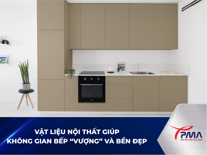 Để không gian bếp vừa hợp phong thủy vừa bền đẹp theo thời gian, vật liệu hoàn thiện đóng vai trò vô cùng quan trọng. Một trong những lựa chọn hàng đầu hiện nay là Nhôm Tấm Nội Thất PMA – giải pháp nội thất hiện đại, thân thiện và hợp xu hướng 2025. Nhôm tấm PMA có độ dày 18 mm, cấu trúc nhôm đặc chắc với lớp sơn tĩnh điện giúp chống ẩm và duy trì màu sắc sang trọng trong mọi điều kiện thời tiết. Kết hợp đa dạng màu sắc: vân gỗ trắc, vân gỗ tự nhiên,…. nhôm tấm nội thất PMA không chỉ giúp bếp bền đẹp mà còn hỗ trợ tăng năng lượng Hỏa, kích hoạt tài khí cho gia chủ.