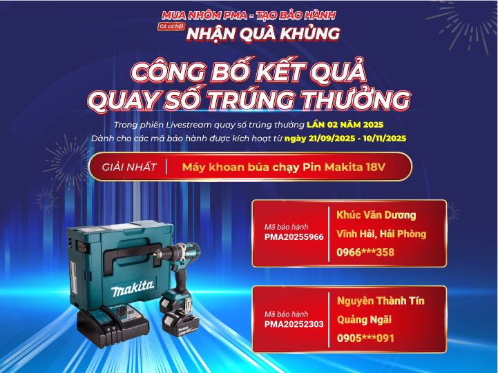 Sau những phút giây hồi hộp chờ đợi, buổi Livestream công bố kết quả chương trình “Mua Nhôm PMA – Tạo bảo hành – Nhận quà khủng” đã kết thúc trong không khí sôi động, đầy hứng khởi và nhiều cảm xúc. Các mã bảo hành được kích hoạt hợp lệ từ 21/09/2025 đến 10/11/2025 chính thức bước vào hành trình tìm ra những chủ nhân may mắn nhất.