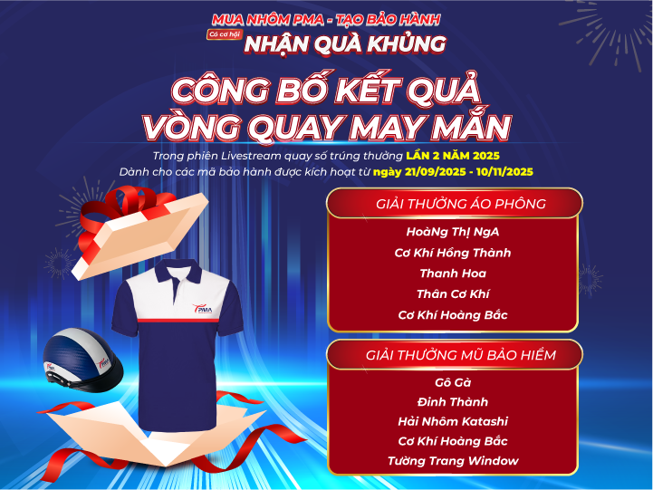 Vòng quay trúng thưởng lần 2 đã khép lại thành công, tiếp tục mang đến những bất ngờ và niềm vui cho khách hàng trong năm 2025. Thành công của chương trình không chỉ được đo bằng giá trị các phần quà, mà còn thể hiện sự gắn kết, tin tưởng và đồng hành mà Quý khách hàng dành cho Nhôm PMA.