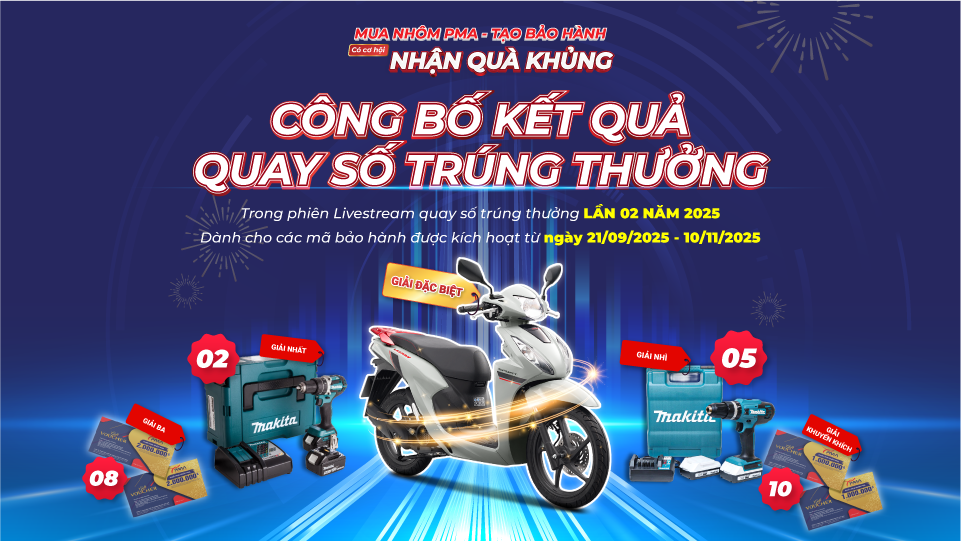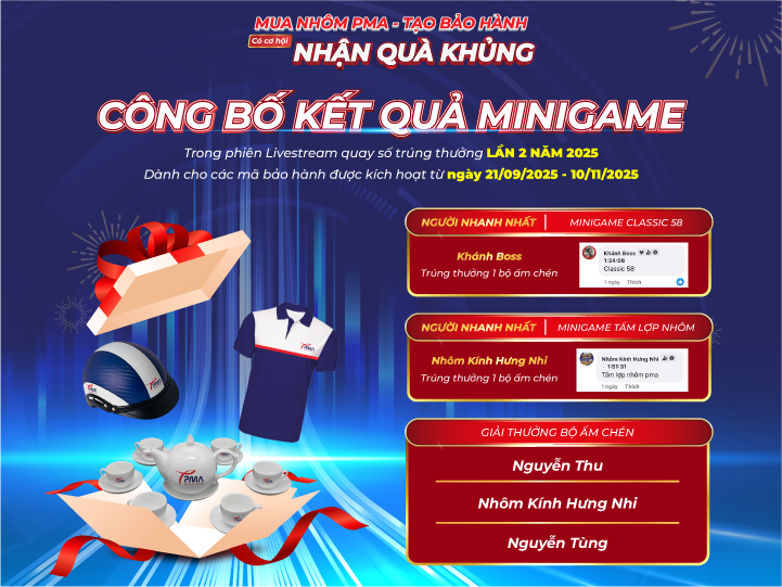 Sau những phút giây hồi hộp chờ đợi, buổi Livestream công bố kết quả chương trình “Mua Nhôm PMA – Tạo bảo hành – Nhận quà khủng” đã kết thúc trong không khí sôi động, đầy hứng khởi và nhiều cảm xúc. Các mã bảo hành được kích hoạt hợp lệ từ 21/09/2025 đến 10/11/2025 chính thức bước vào hành trình tìm ra những chủ nhân may mắn nhất.