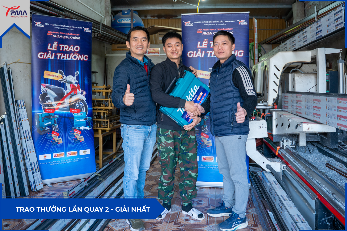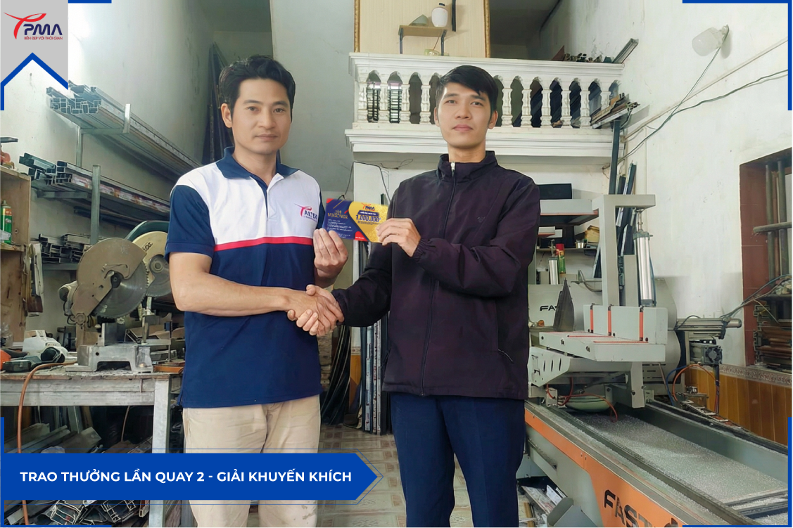 Những hình ảnh trao thưởng thực tế chính là minh chứng rõ nét cho cam kết tri ân, sự minh bạch và tinh thần đồng hành mà Nhôm PMA luôn hướng tới trong mọi hoạt động chăm sóc khách hàng.