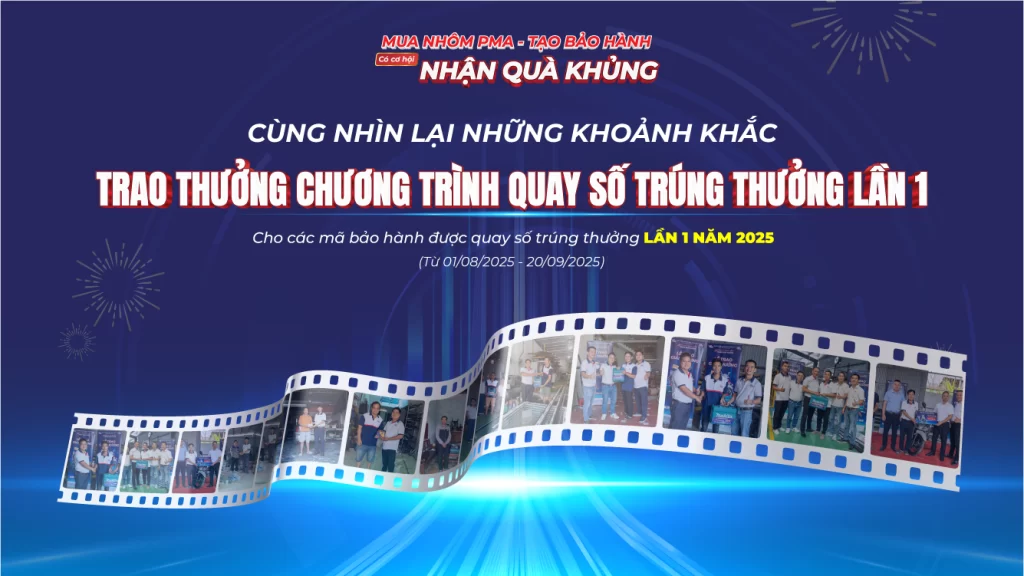 Chương trình quay số trúng thưởng “Mua nhôm PMA – Tạo bảo hành – Có cơ hội nhận quà khủng” đã khép lại vòng quay đầu tiên vào lúc 19h00 ngày 25/09/2025, mang đến niềm vui và những phần quà giá trị cho hàng loạt khách hàng may mắn trên khắp cả nước.