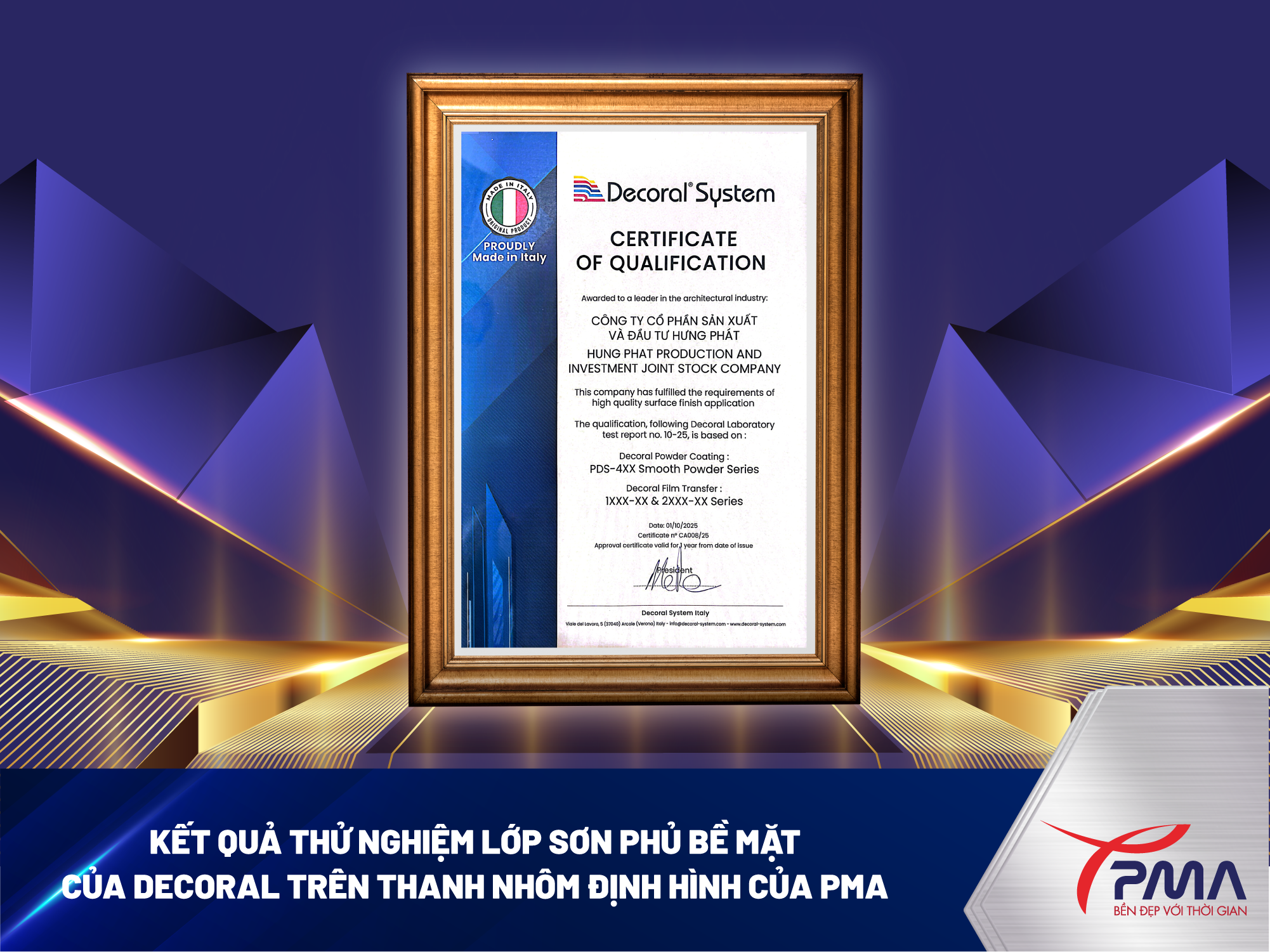 Hiện nay, Nhôm PMA là đơn vị duy nhất tại Việt Nam được Decoral cấp chứng nhận cho chính sách bảo hành này. Việc triển khai bảo hành dài hạn không chỉ góp phần nâng cao giá trị sử dụng của sản phẩm mà còn tạo ra một tiêu chuẩn mới về độ bền màu và tính minh bạch trong cam kết chất lượng.