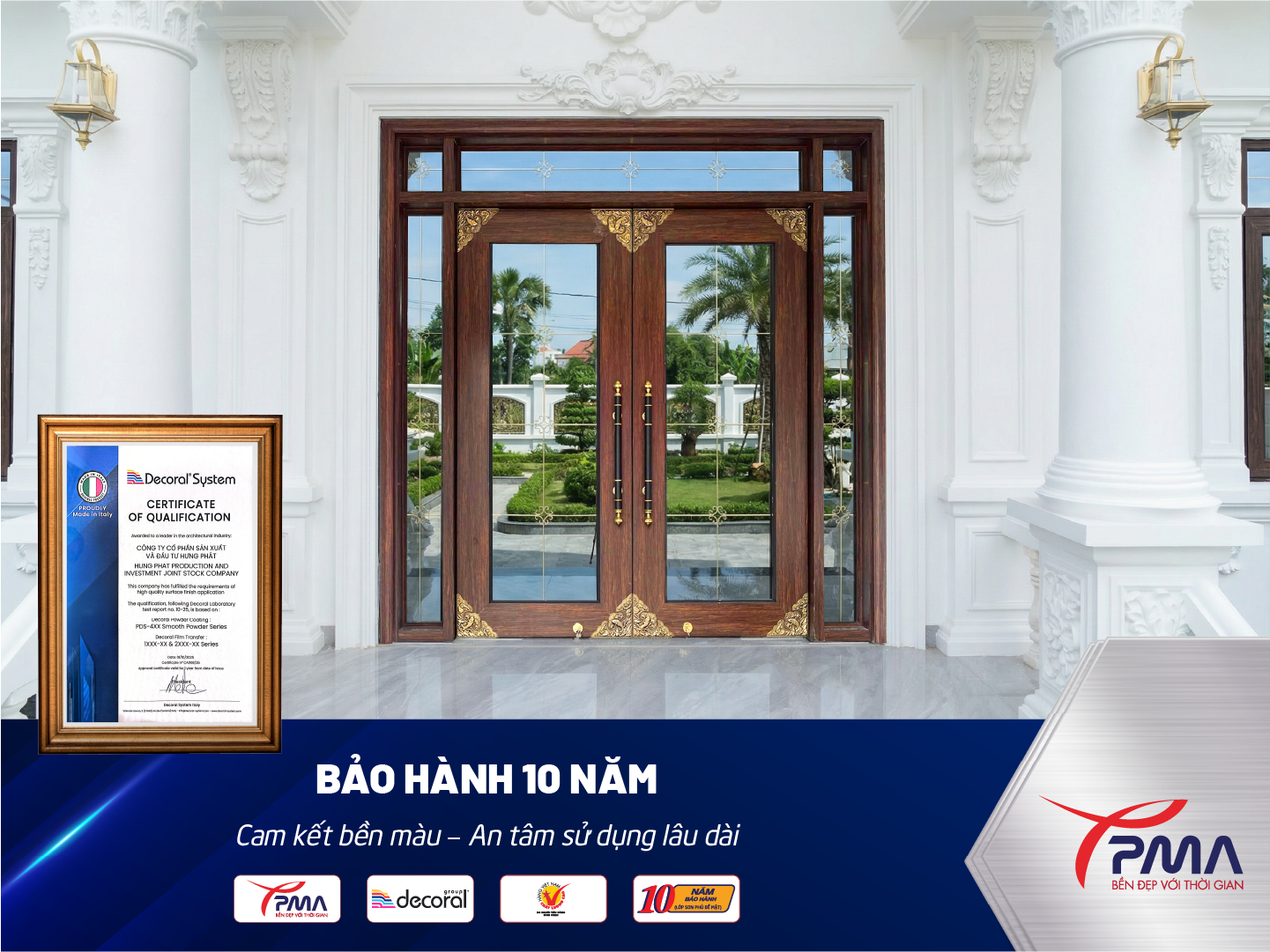 Lưu ý: Chính sách bảo hành 10 năm chỉ áp dụng đối với các sản phẩm có dán tem logo bảo hành 10 năm của Nhà máy Nhôm PMA và được kích hoạt thông qua App bảo hành chính thức.